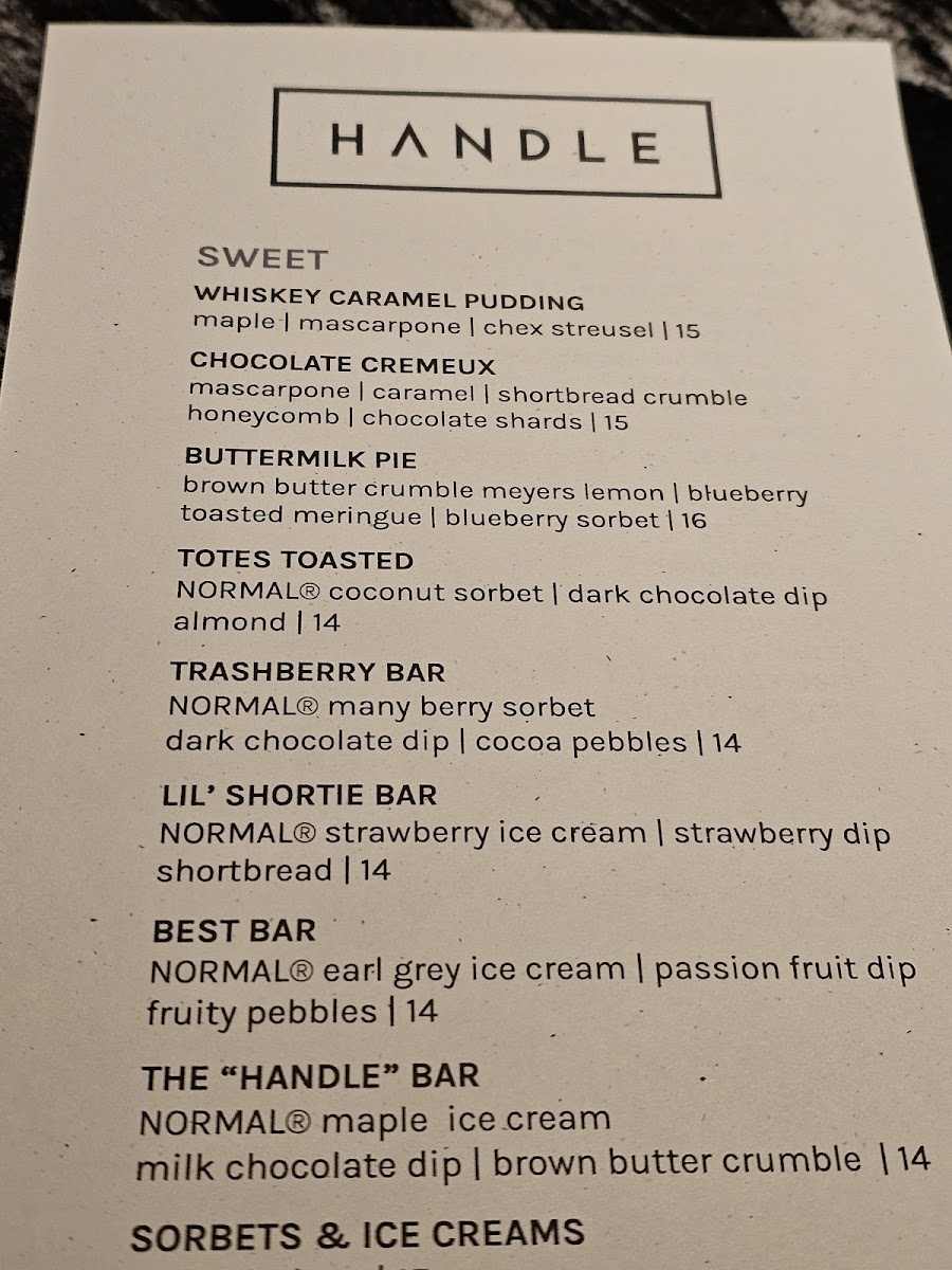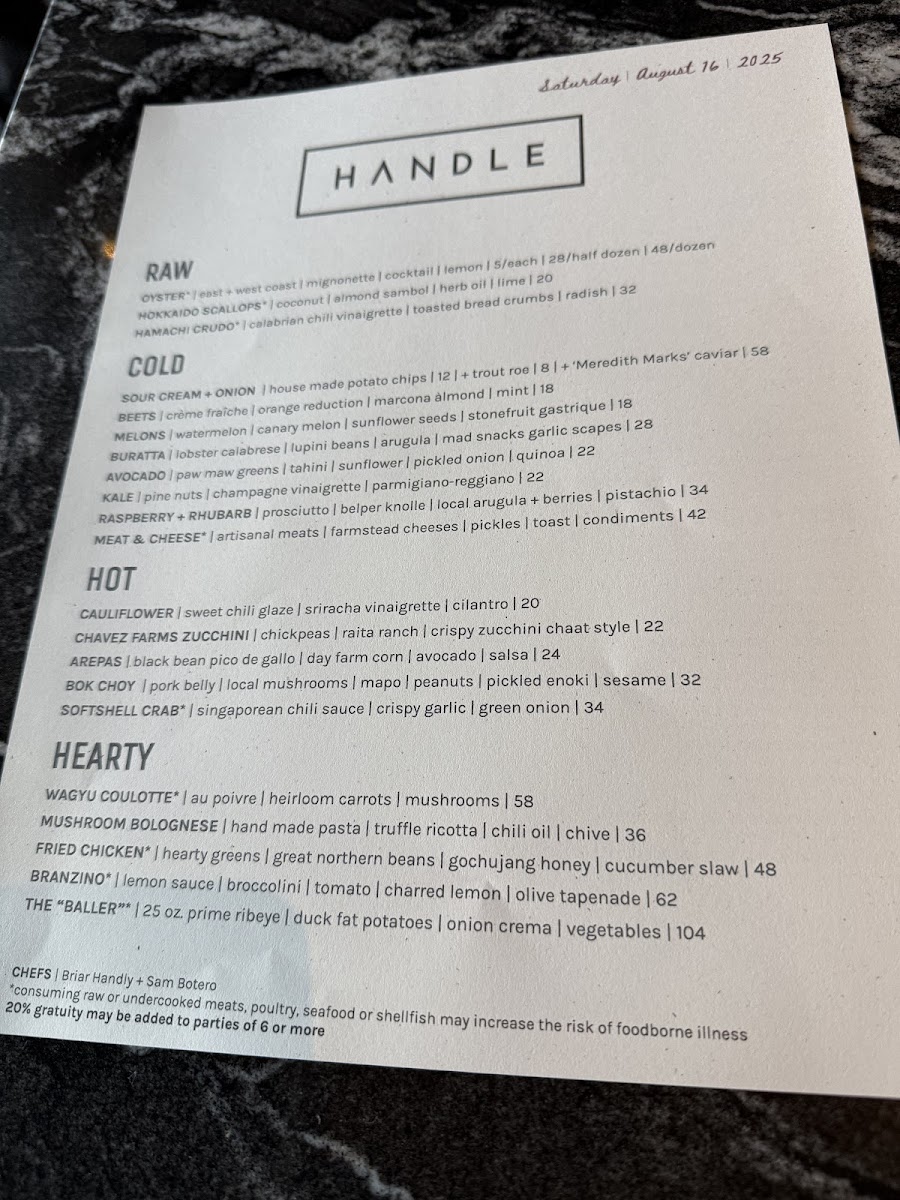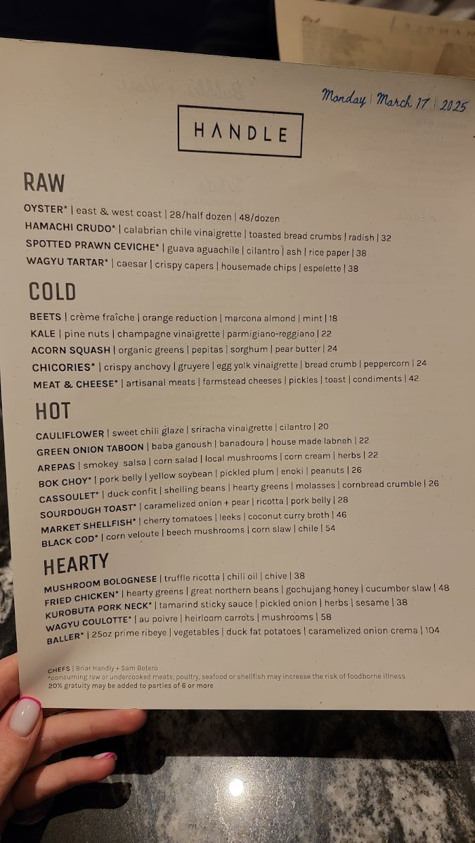 As you step into the inviting atmosphere of Handle, you're enveloped by a warm, laid-back vibe that makes it the perfect setting for a romantic date night or a lively gathering with friends. The ambiance is complemented by attentive and friendly staff who are truly knowledgeable about the menu offerings, making every visit feel personalized and memorable.
